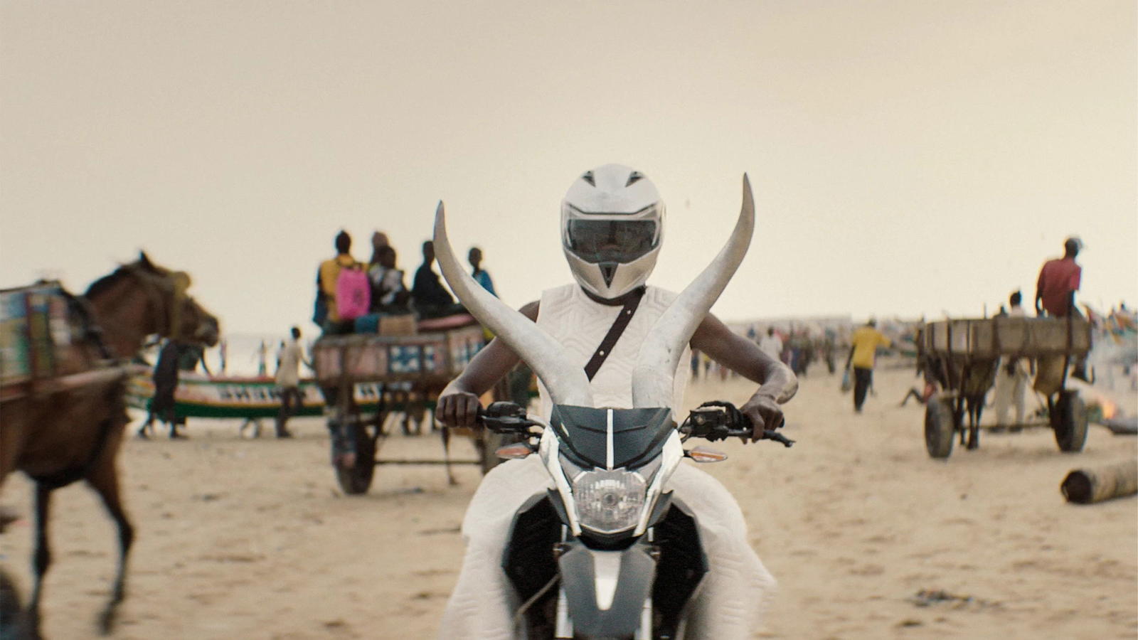 Die französische Regisseurin Caroline Lescot (Nathalie Richard) dreht eine Neuverfilmung des Tragödien-Klassikers „Medea“. Allerdings spielt die Geschichte um eine verlassene Ex-Prinzessin, die aus Verzweiflung ihre eigenen Kinder tötet, diesmal nicht im antiken Griechenland, sondern an der senegalesischen Atlantikküste. Ihre Darsteller*innen sind überwiegend Einheimische, nur ihre Medea und ihr Jason werden von der weißen Deutschen Maja (Maren Eggert) und dem zwar senegalesisch-stämmigen, aber schon länger mit einem französischen Pass in Paris lebenden und arbeiten Nourou Cissokho (Jean-Christophe Folly) verkörpert.